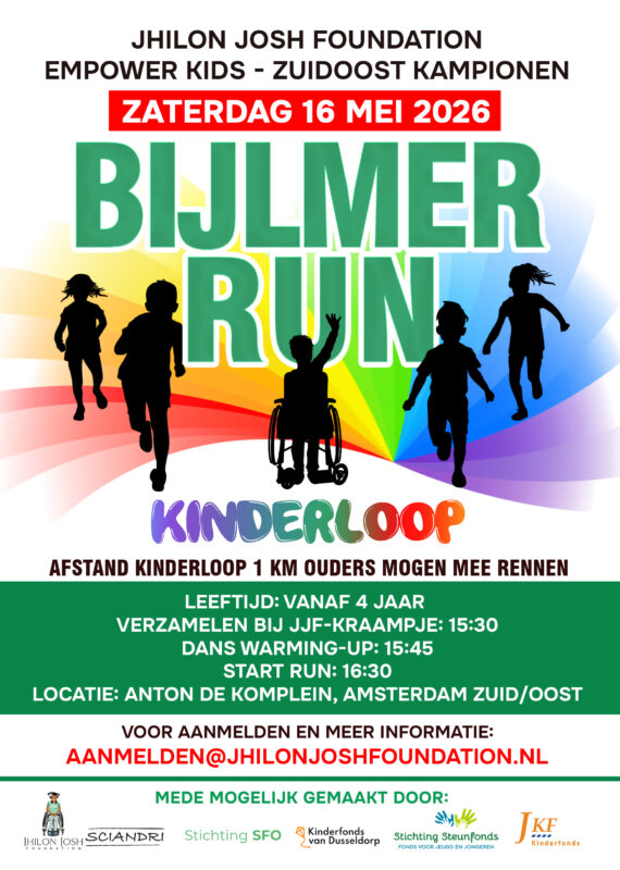Op zaterdag 16 mei is het weer zover de Bijlmer Run in Amsterdam Zuidoost! Ook dit jaar is de Jhilon Josh Foundation trots aanwezig met ons project Zuidoost Kampioenen, speciaal voor dit sportieve en verbindende evenement.